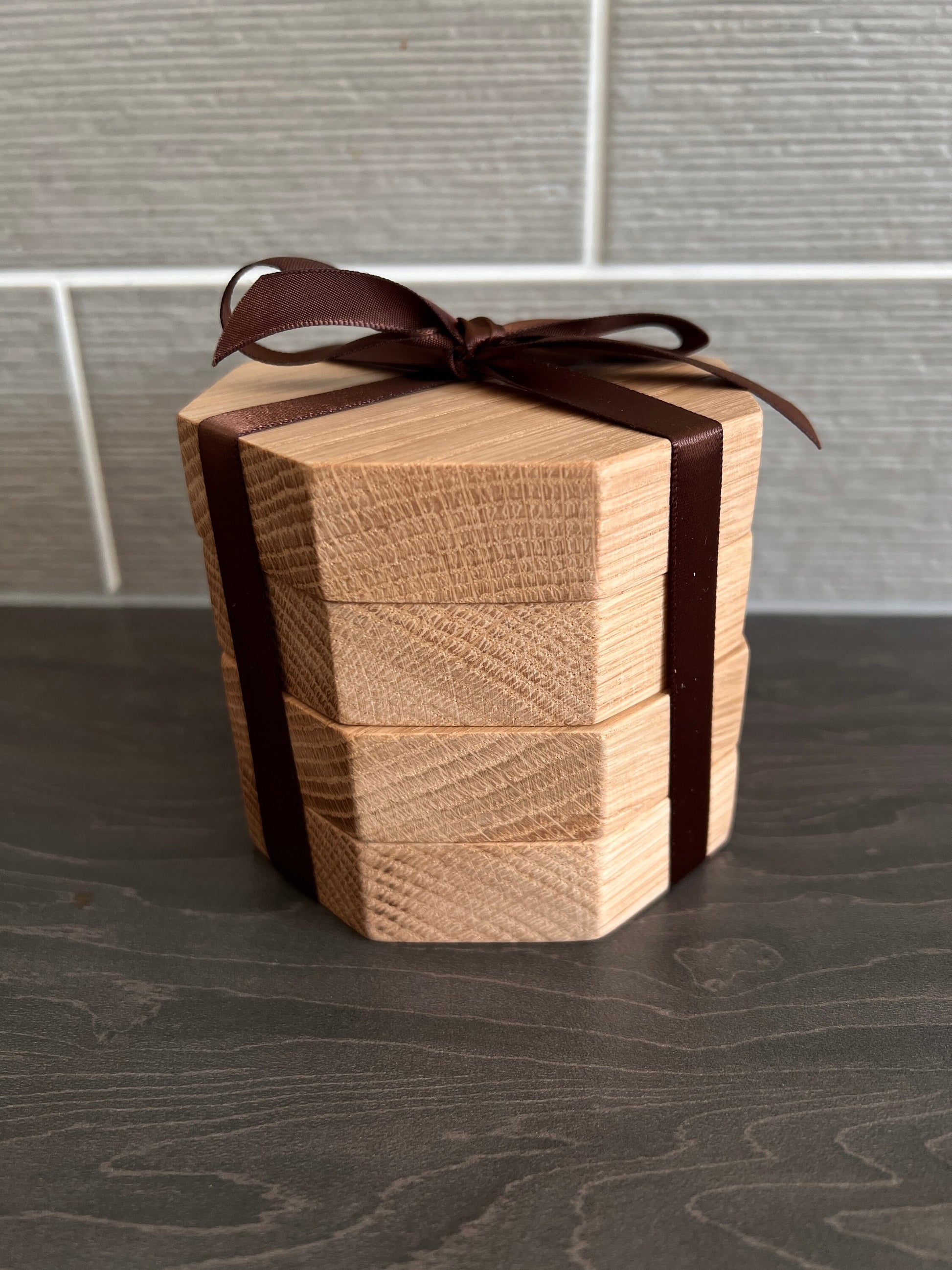 Set of 4 Solid Octagonal shape Oak 'Chunky' Handmade Coasters, ideal gift for new home/wedding/anniversary