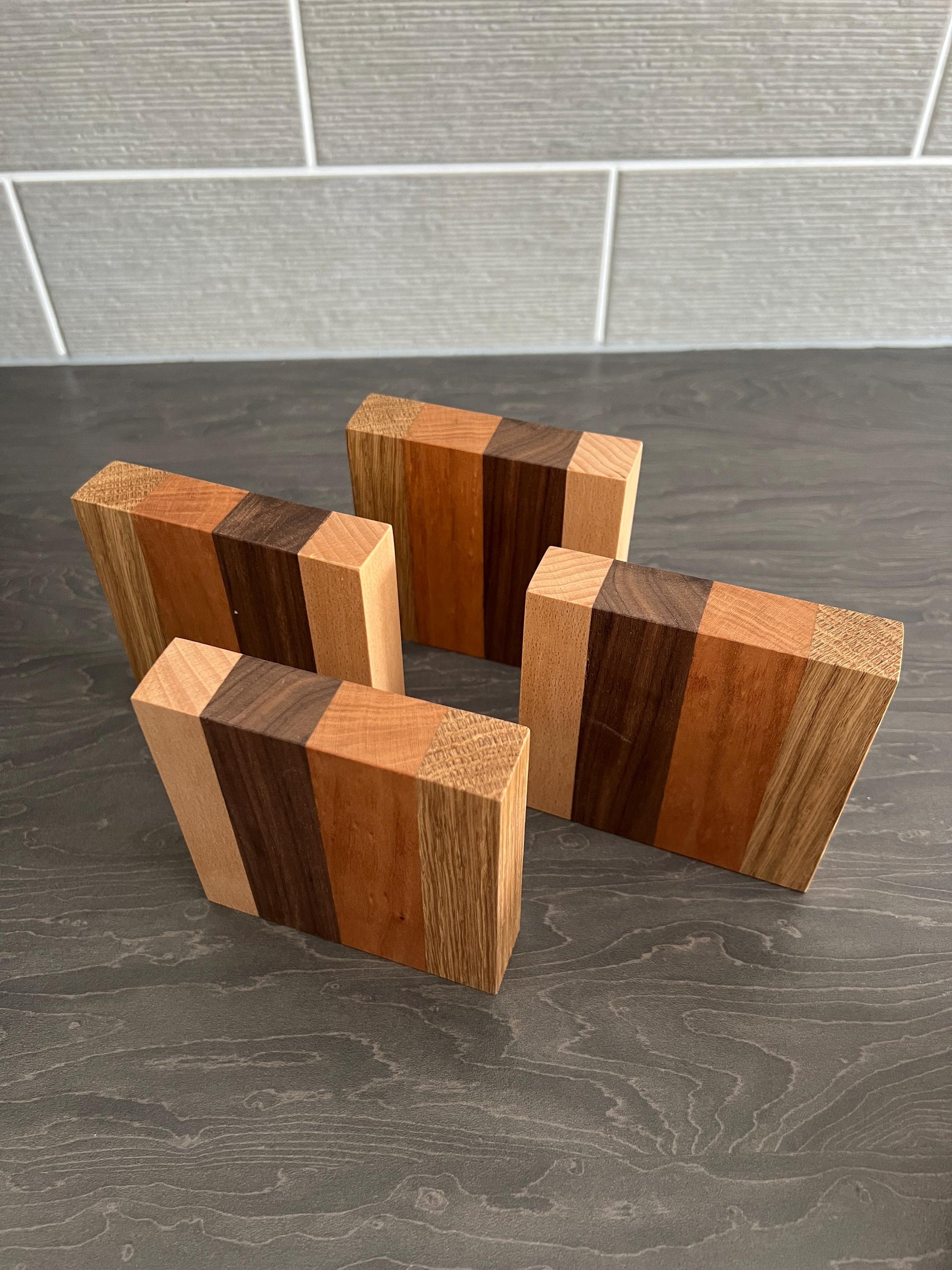 This is a set of 4 square 'Chunky' mixed hardwood Coasters.